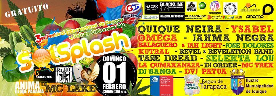 Guayaberos, entre los diversos panoramas veraniegos de este 2015, destacamos la tercera versión del festival de reggae y raíces culturales Iquique Solsplash, evento que se realizará en Cavancha el próximo domingo 1 de febrero -de manera maratónica- pasado el mediodía hasta las 24.00 horas.